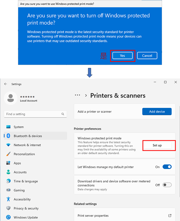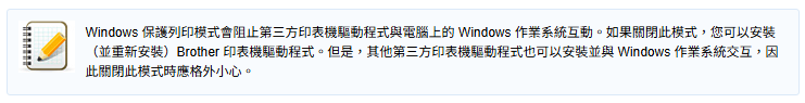 但請注意,如果啟用了 Windows 保護列印模式,某些 廠牌包含大廠 Brother 或 其他廠牌 印表機驅動程式、傳真驅動程式和應用程式將無法使用。