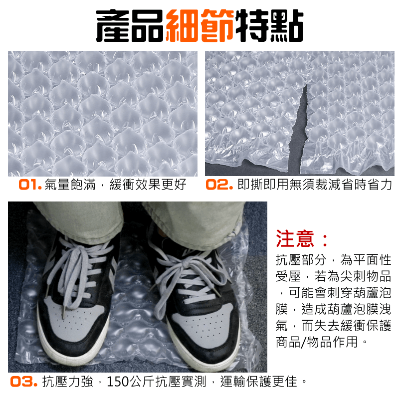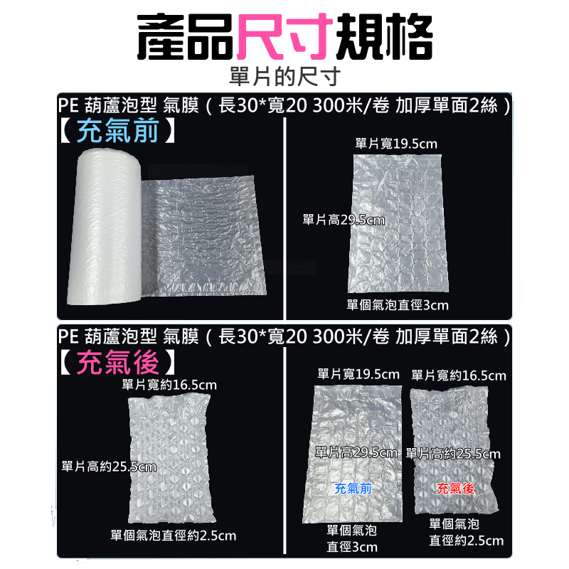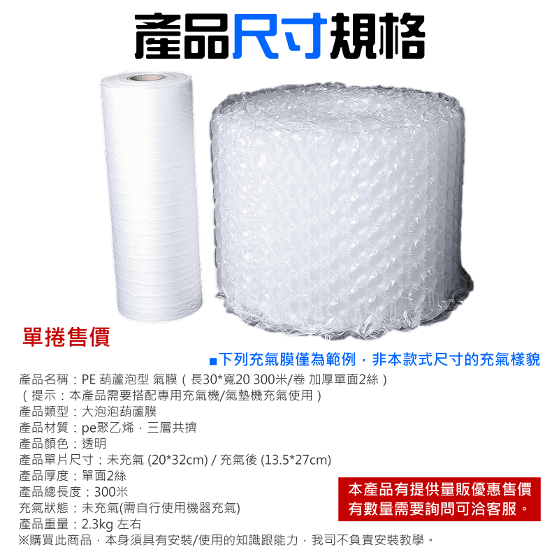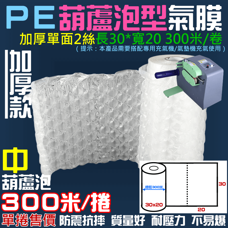 產品名稱:PE 葫蘆泡型 氣膜(長30*寬20 300米/卷 加厚單面2絲)
