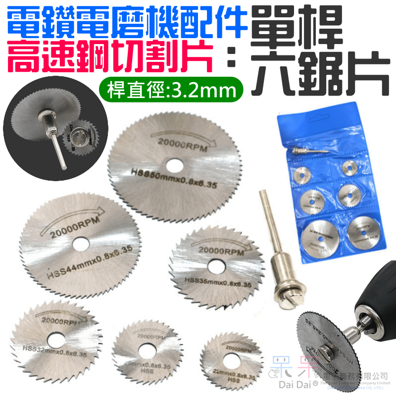 商品名稱:電鑽電磨機配件:高速鋼切割片(單桿、六鋸片)
