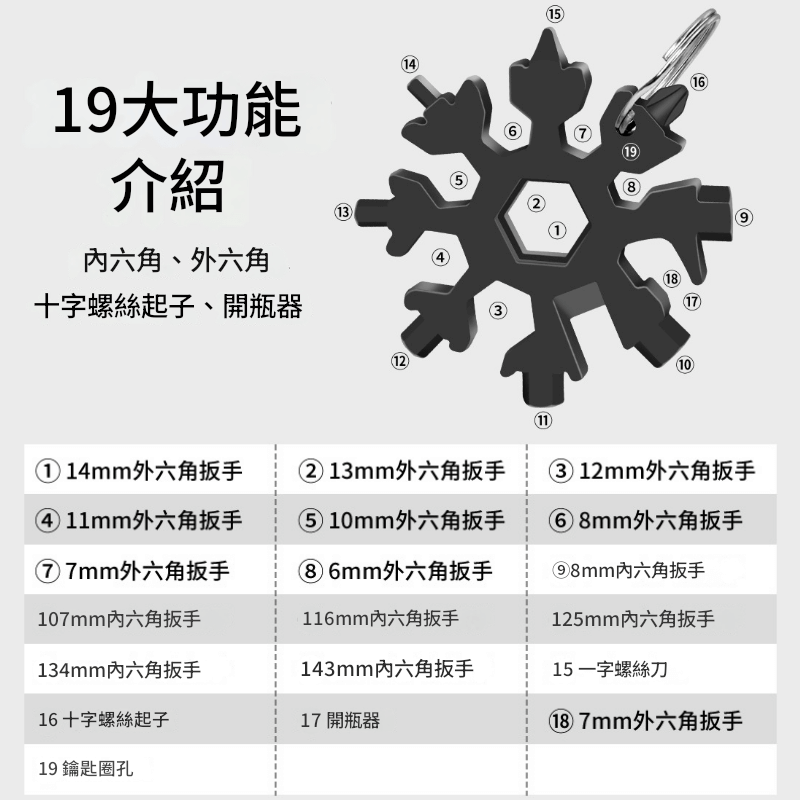 產品名稱:多功能19合1雪花扳手(黑色、銀色、金色 三色可選)